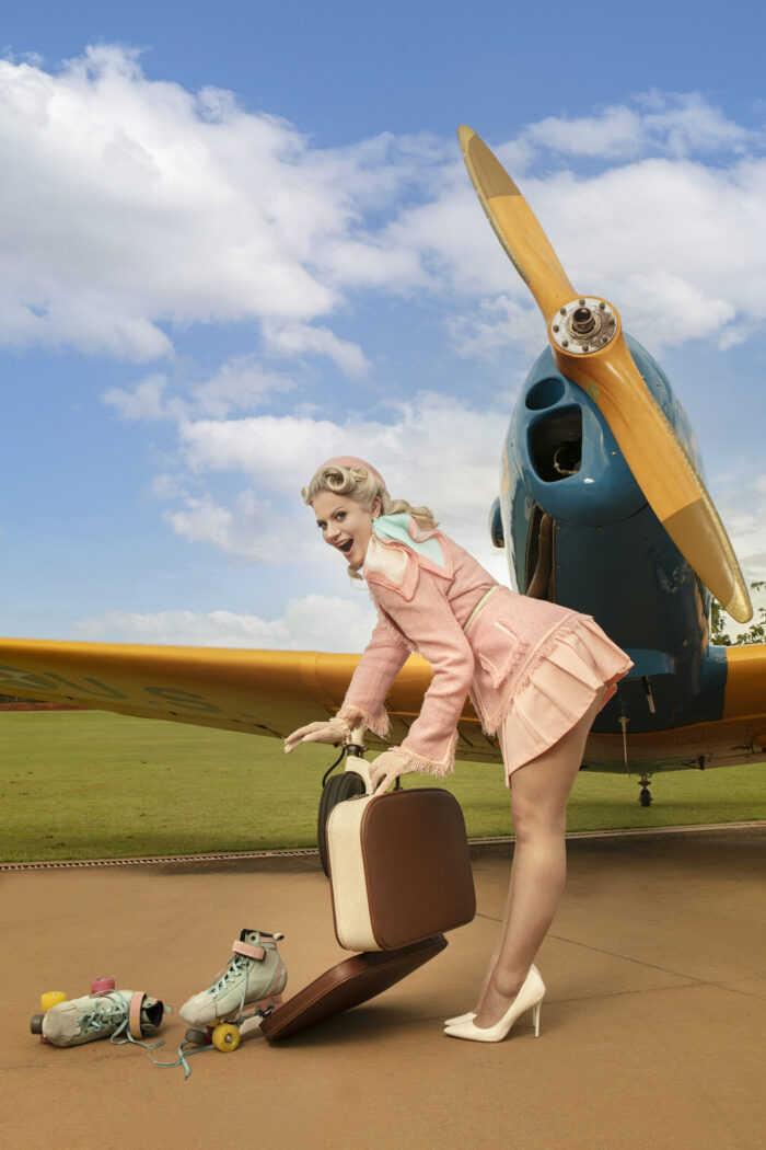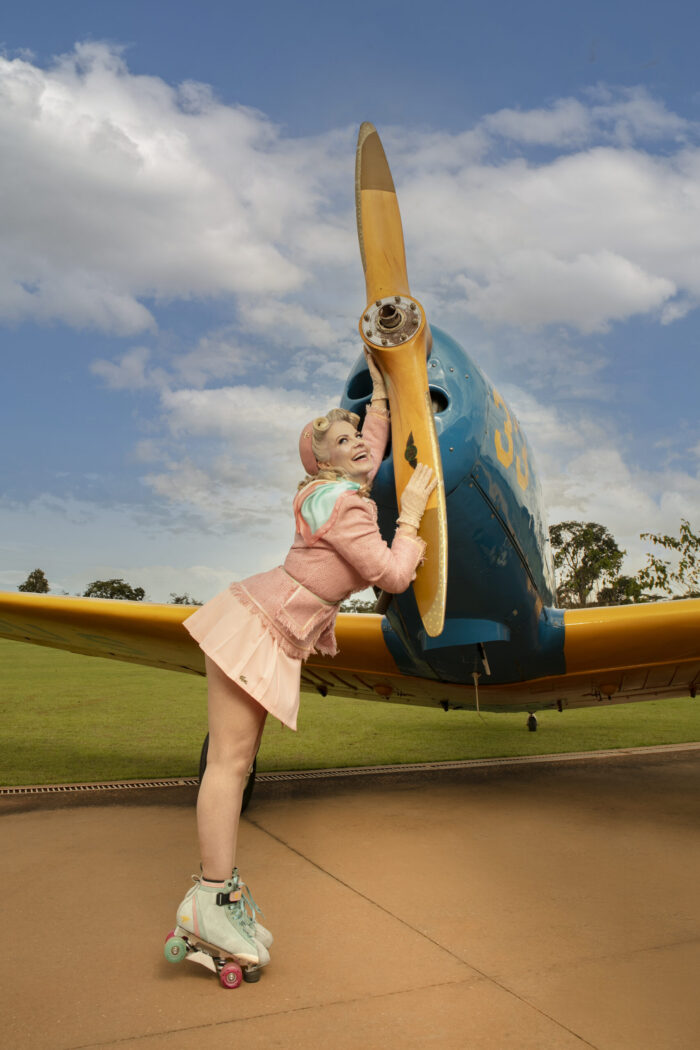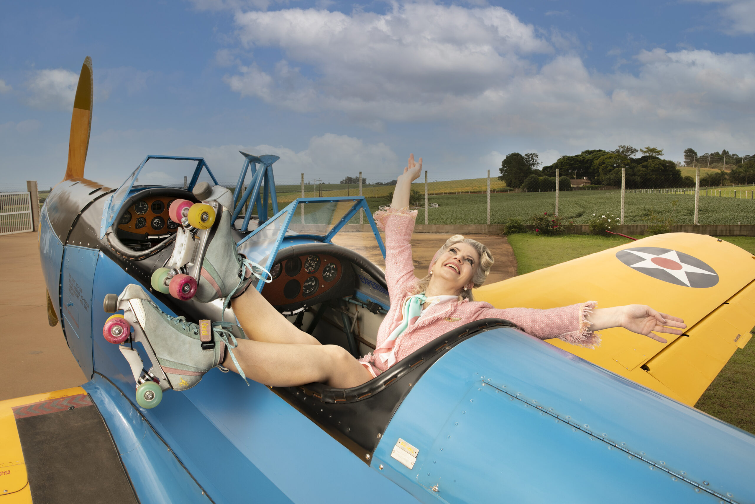 Universo Retrô – O ensaio que você fez com a Daniela Petrucci uniu patins, aviões e estética retrô. Como surgiu essa ideia e como foi se ver nesse universo?